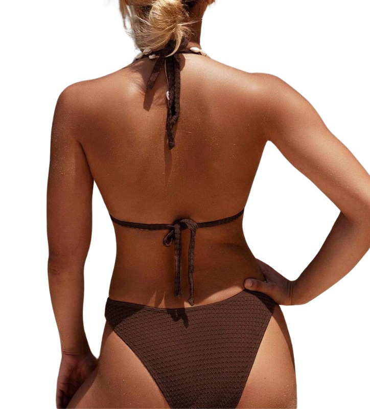 Bikini marrón con detalles de caracolitos , perfecto para un look natural y chic bajo el sol.