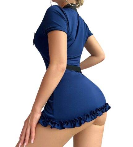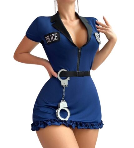 Transforma tu noche con nuestro disfraz de policía hot de dos piezas. Incluye una atrevido vestido y un cinto. (Esposas
