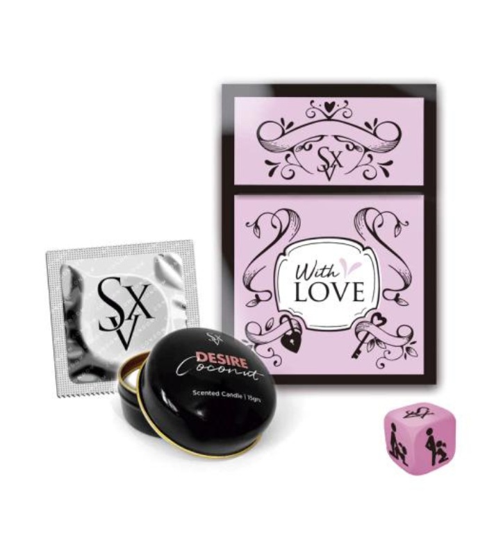 Ideal para regalar! Incluye 1 dado de juego con posiciones + 1 Preservativo +Vela para masajes 15gr (Aroma puede variar)