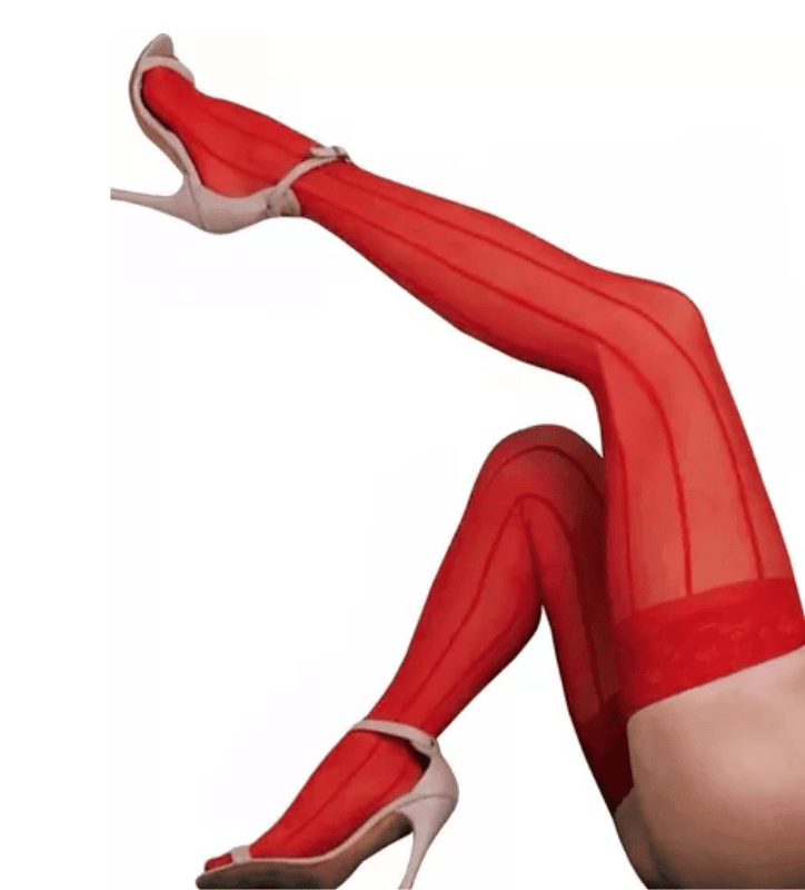Media de lycra con puntilla siliconada y rayas verticales.