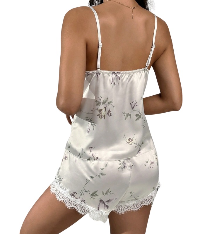 ¡Dulces sueños con un toque sexy! Este pijama de satín floreado con detalles de encaje es todo lo que necesitas para lucir increíble mientras descansas 😍💖 ¡Comodidad y sensualidad en una sola prenda!
