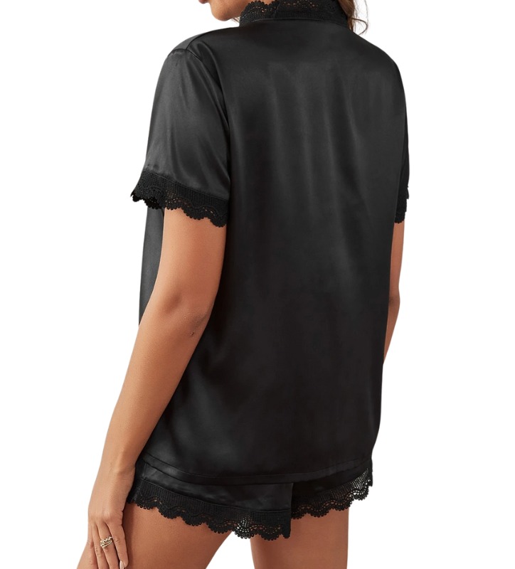 Elegancia que enamora Este babydoll en satín azul profundo con delicados apliques en contraste está hecho para resaltar tu lado