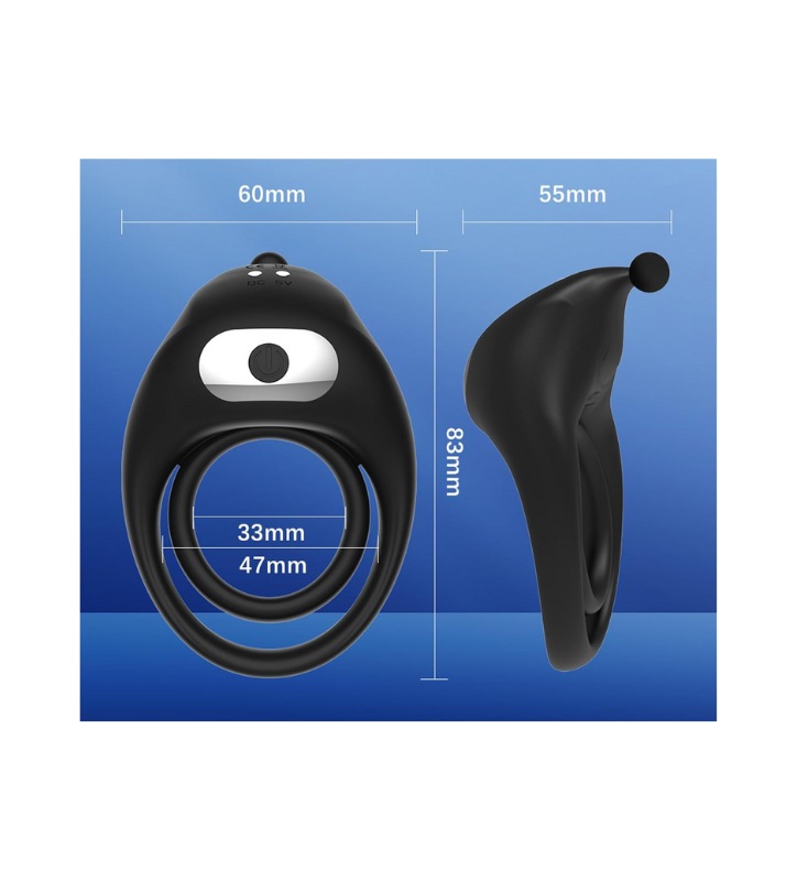 Power Duo es un anillo vibrador doble para el pene. Uno de los anillos lo pones sobre el pene y el otro detrás de los testículos.