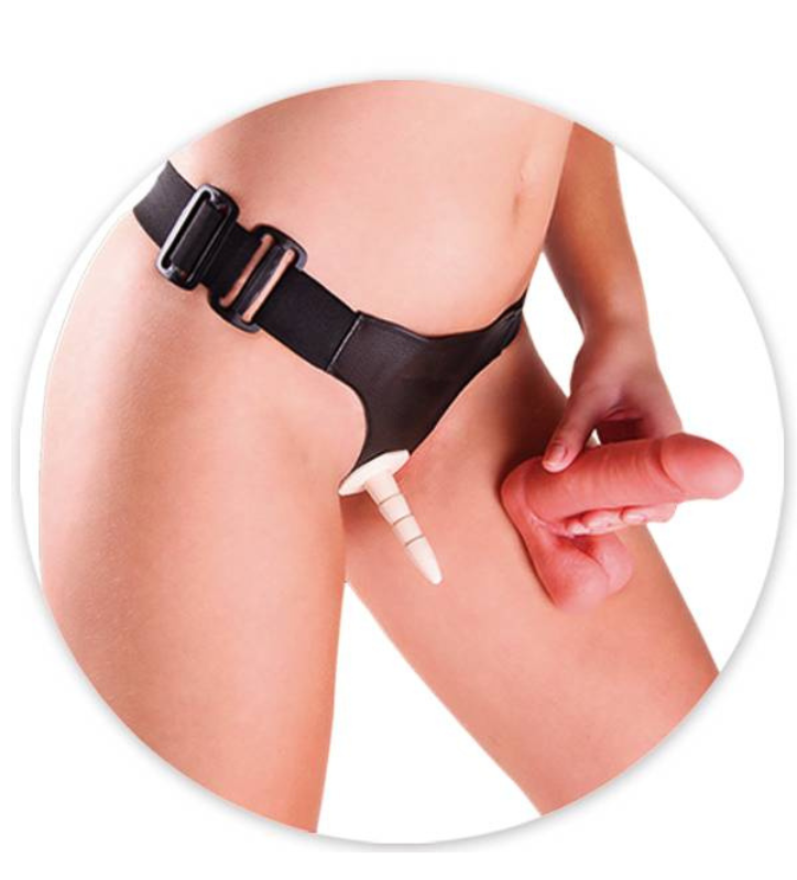 Este Arnés de cuero con consolador ajustable con plug, para el encaje del consolador fabricado en resina y silicona sin ftalatos.
