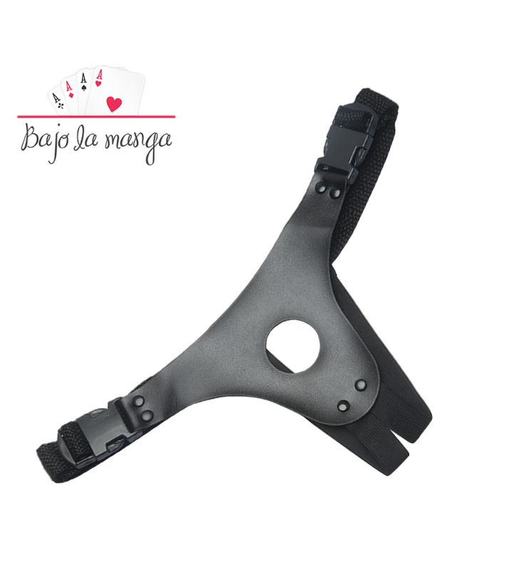 Cinto de símil cuero con elástico y traba de plástico. Para utilizarlo con prótesis peneanas. Orificio 3,5 cm de diámetro. Cierre con traba en la cintura que facilita su uso y ajuste.