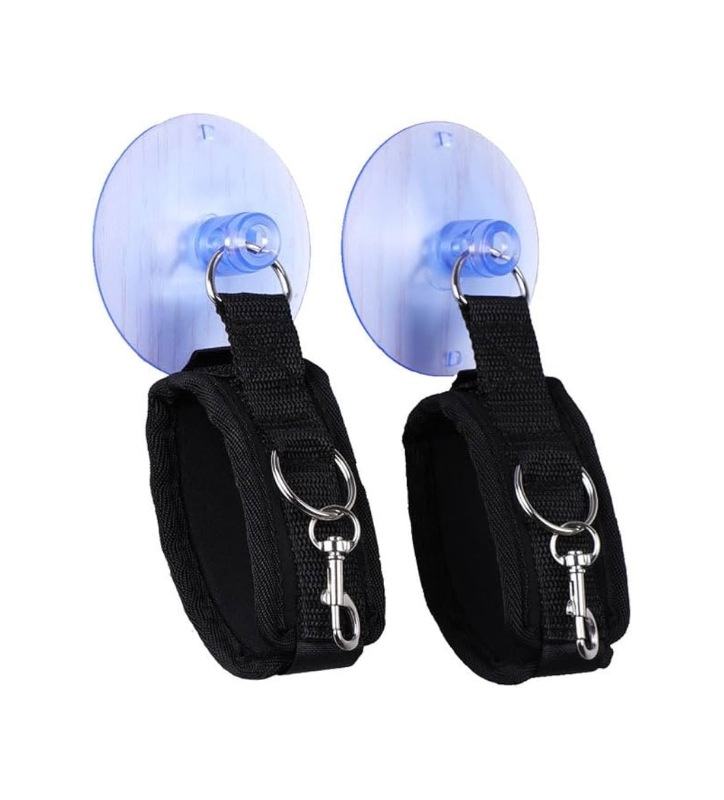 Par de esposas con ventosas, un añadido que nos dará mucho juego, ya que no solo permitirá tener las manos unidas sino que también podremos disfrutar de inmovilizar todo el cuerpo. Las esposas se unen entre sí con un enganche tradicional y, a su vez, de las mismas salen dos tiras individuales con unas grandes ventosas en cada esposa con una alta capacidad de adherirse a cualquier superficie no porosa.