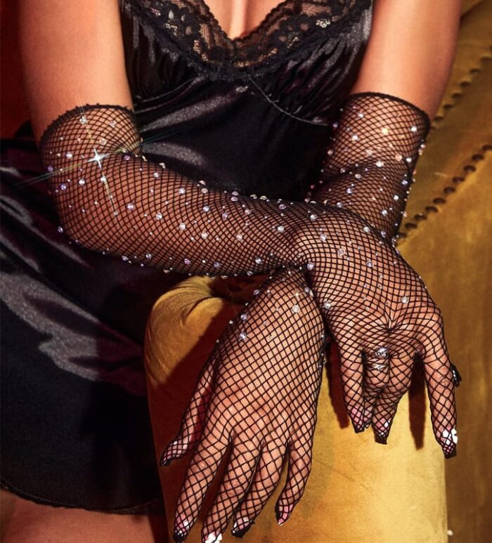Guantes De Red Con Strass Negro
