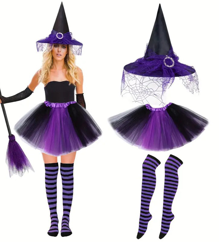 Este kit que incluye sombrero, pollerita de tul y medias bucaneras.