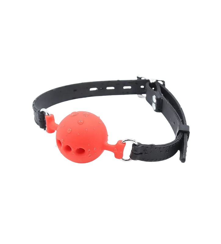 Tápale la boca con una bola de suave silicona en intenso color rojo…como el deseo que se va a desatar dentro de ti cuando veas a tu pareja con ella en su boca, obediente, esperando tus órdenes y gimiendo de placer al recibir por tu parte ese deseo que estalla delante de ella, o de él, y que no hará más que despertar un sinfín de momentos inigualables.