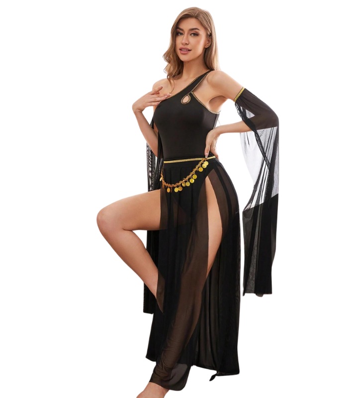 ¡Desata tu lado más sensual y misterioso con este disfraz de odalisca! 💃✨ Con body de un hombro, falda vaporosa y mangas exóticas, te sentirás como una verdadera reina 😍🔥