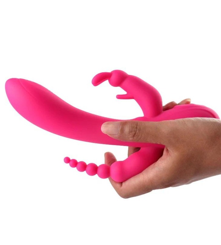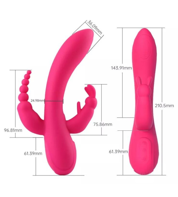 El vibrador Triple Rabbit, una deliciosa fusión de placer diseñada para satisfacer todos tus deseos. Este innovador vibrador de conejo con cuentas anales lleva tu satisfacción a nuevas alturas.